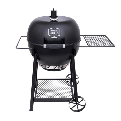 Угольный гриль Oklahoma Joe's® Blackjack - это классический угольный гриль дополненный инновационными деталями. Котёл и крышка гриля имеют матовое фарфоровое покрытие для защиты от коррозии. Крышка на петлях гарантирует удобство готовки, а съемный, с фарфоровым покрытием сборник пепла очень просто чистить. Круговая система забора воздуха 360° и регулируемая вытяжная труба обеспечат равномерное горение угля и контроль температуры. Профессиональный, легкочитаемый 3х дюймовый термометр. Боковое пристолье и держатель для полотенец можно легко менять местами.
